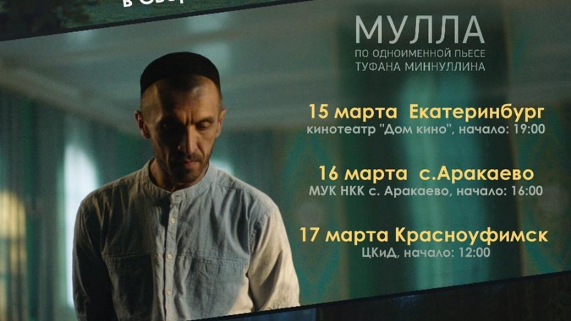 15 марта 2019 года в Большом Зале Дома Кино состоится церемония открытия Дней Татарстанского кино в Свердловской области. Вашему вниманию будет представлен художественный фильм «Мулла», снятый по мотивам произведения знаменитого татарского драматурга Туфана Миннуллина.