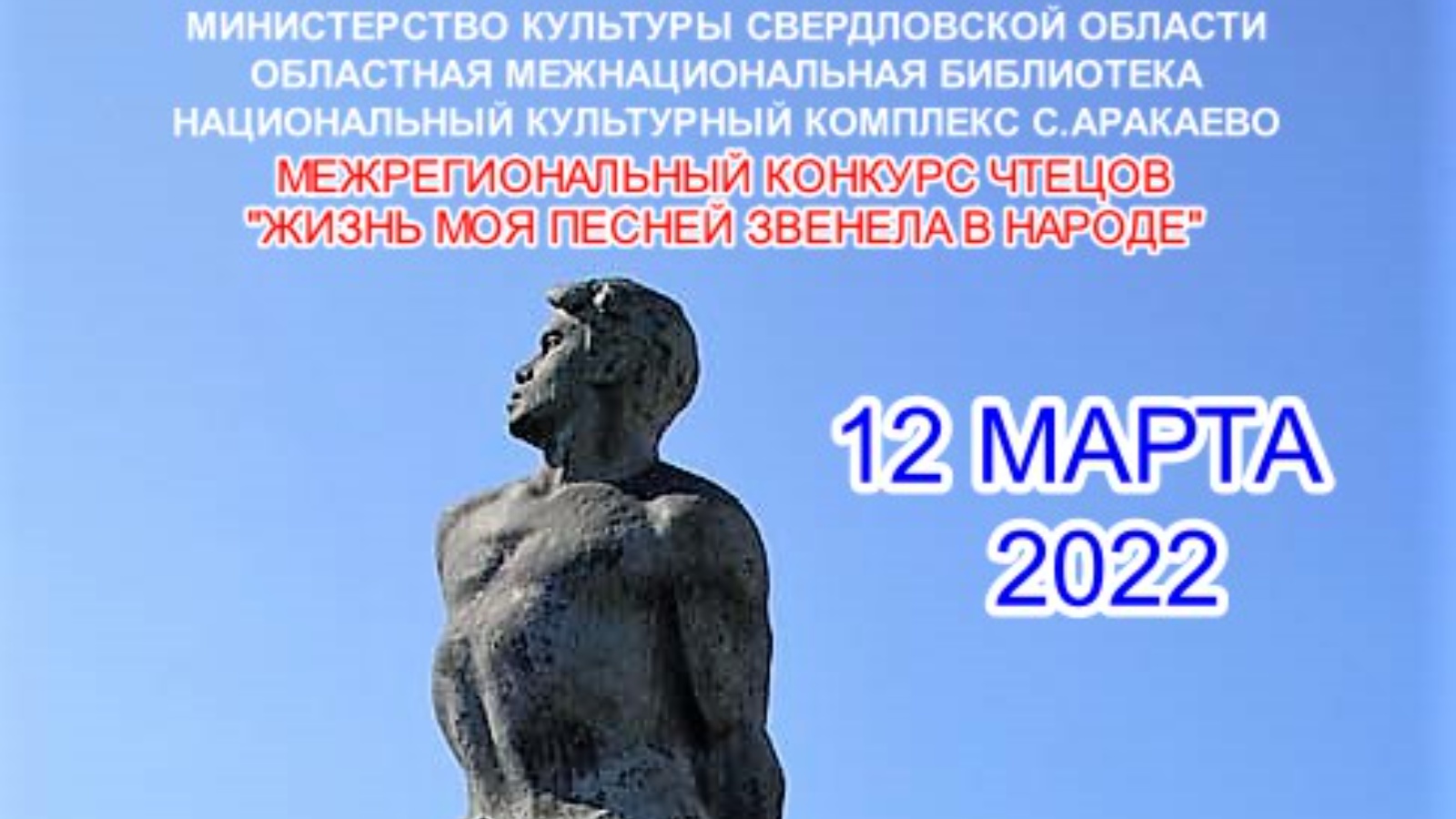 Межрегиональный конкурс чтецов «Жизнь моя песней звенела в народе», ежегодно проводимый МУК НК с.Аракаево Нижнесергинского района Свердловской области совместно с Областной Межнациональной библиотекой г.Екатеринбурга при поддержке Министерства культуры Свердловской области, Исполкома Всемирного конгресса татар г.Казань завершил прием заявок на участие в конкурсе. По итогам заявочной компании принято 370 заявок из 9 регионов Российской Федерации; Свердловской, Курганской, Кировской, Тюменской, Омской, Нижегородской областей, Пермского края, республик Марий Эл и Татарстан, представляющих более чем 50 территорий и муниципалитетов. Интерес к конкурсу возрастает из года в год, произведения великого татарского поэта Героя Советского Союза будут читать на русском, татарском, белорусском и английском языках.