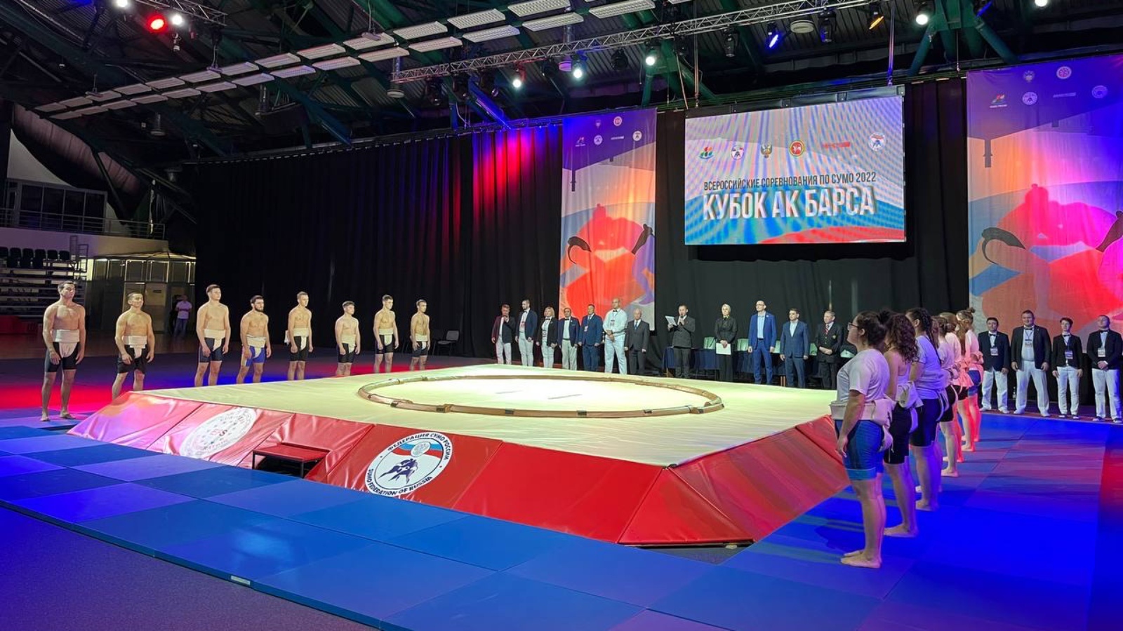 В торжественной части приняли участие первый Вице-президент Федерации сумо России Геннадий Калеткин, ведущий советник отдела развития спорта высших достижений Министерства спорта РТ Сергей Гудин, генеральный секретарь Федерации сумо России Татьяна Папоян, Президент Федерации сумо РТ Фарит Шайхутдинов и главный судья, судья высшей категории Михаил Аршинов.