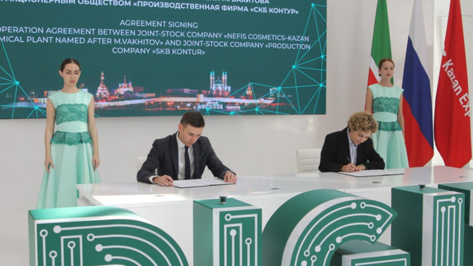 Сегодня в рамках международного форума Kazan Digital Week 2023 состоялось заключение соглашения о сотрудничестве между Нэфис Косметикс и СКБ Контур. Договор подписали директор по информационным технологиям Нэфис Косметикс Юлия Юрис и руководитель Верхневолжского регионального центра СКБ Контур Максим Пырьев.