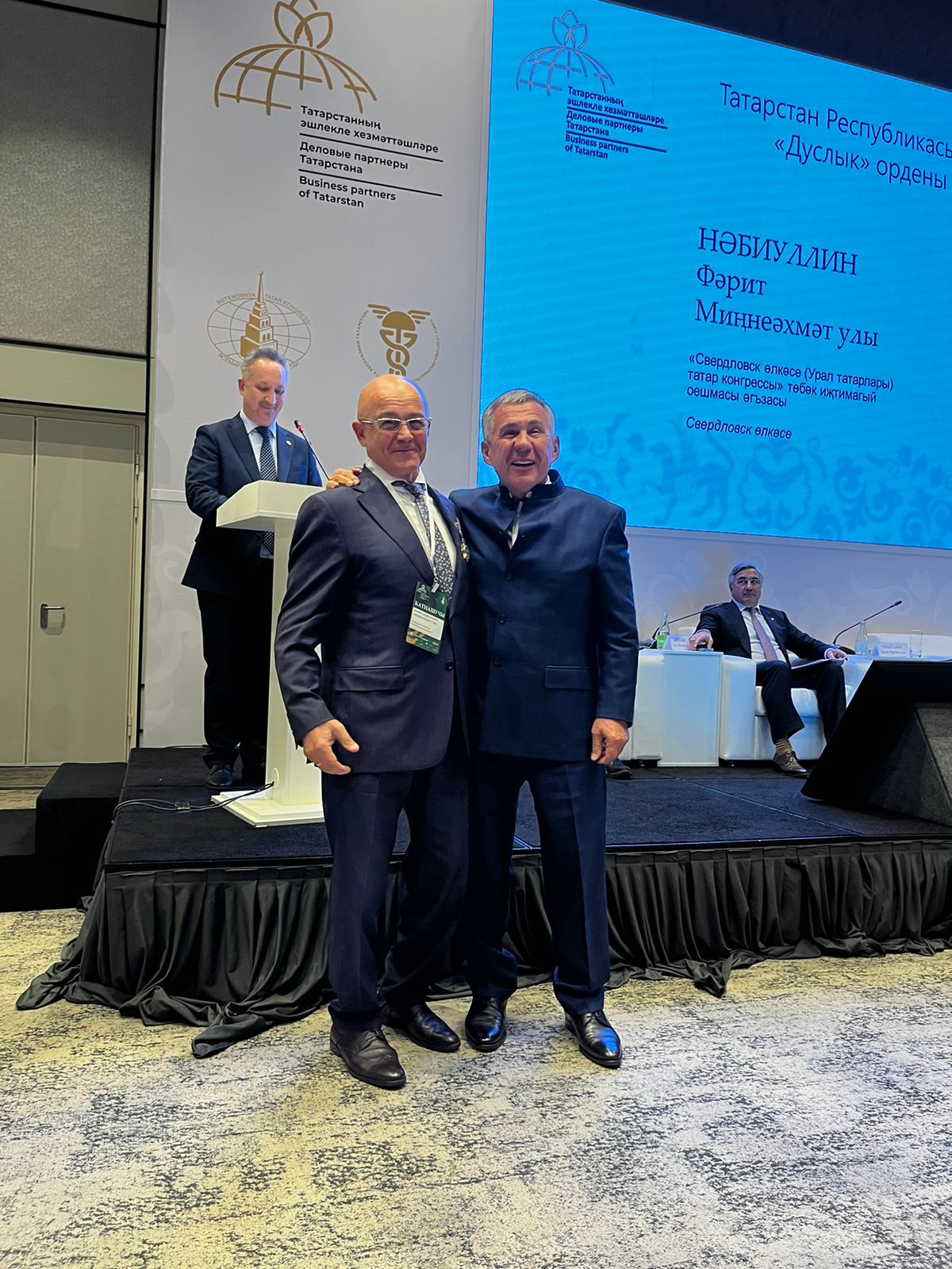 27-28 ноября 2023 года в Казани прошел XVI Форум «Деловые партнеры Татарстана». На Форуме, который организовал Всемирный конгресс татар совместно с Торгово-промышленной палатой Республики Татарстан приняли участие около 350 крупных татарских предпринимателей из более чем 40 регионов Российской Федерации и более десятка стран ближнего и дальнего зарубежья. Свердловскую область представили заместитель Постпреда РТ Фавия Сафиуллина и генеральный директор ООО «Березовский рудник» Фарит Набиуллин.