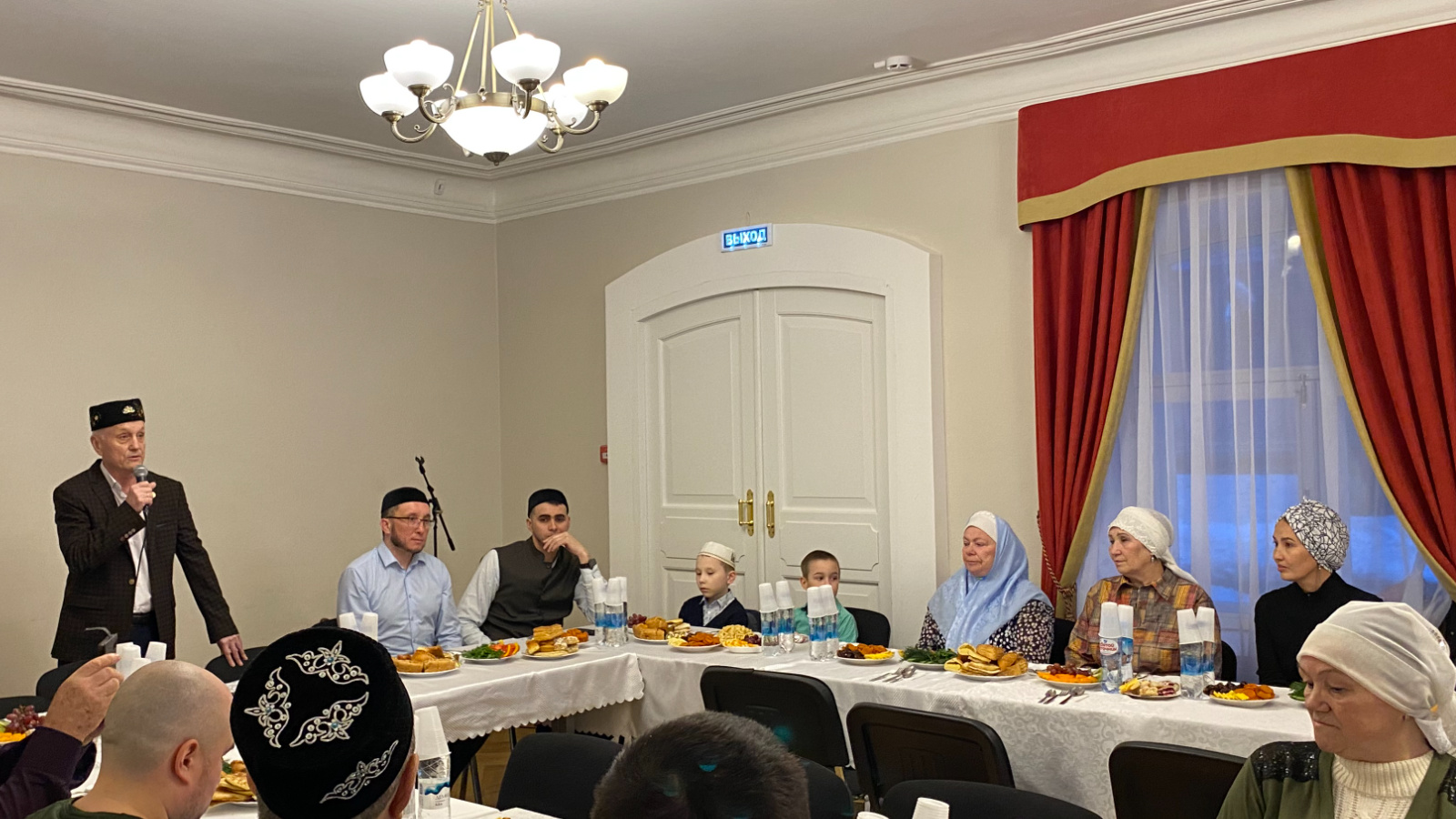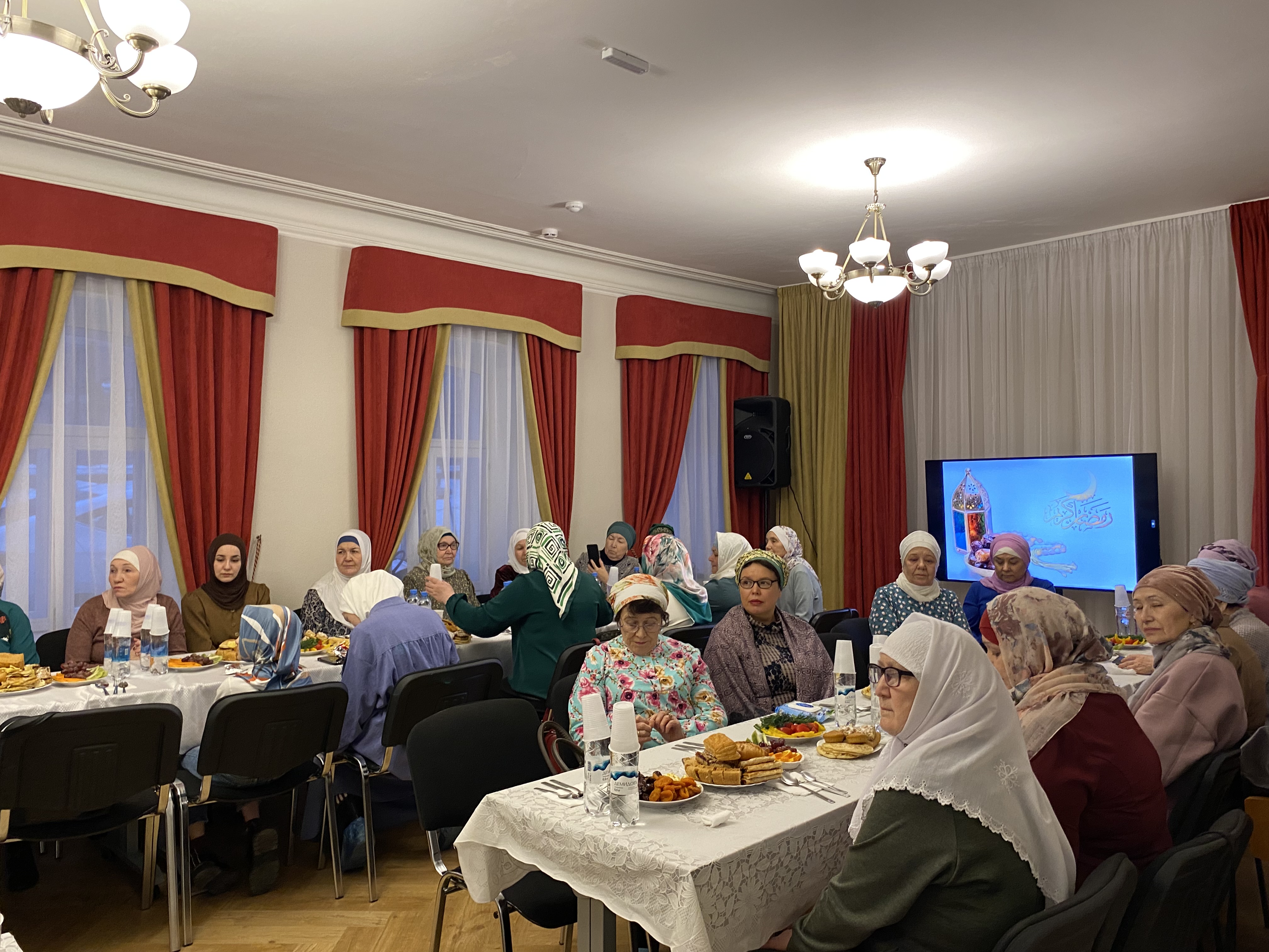После прочтения священного Корана наступило время разговения. Для желающих совершить намаз были созданы необходимые условия. Потом вечер продолжился за столом с богатыми угощениями. Мероприятие прошло в доброй, душевной обстановке.