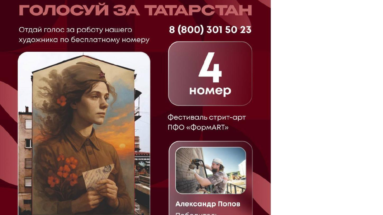 Поддержите мурал Александра Попова. Проголосуй за Татарстан!