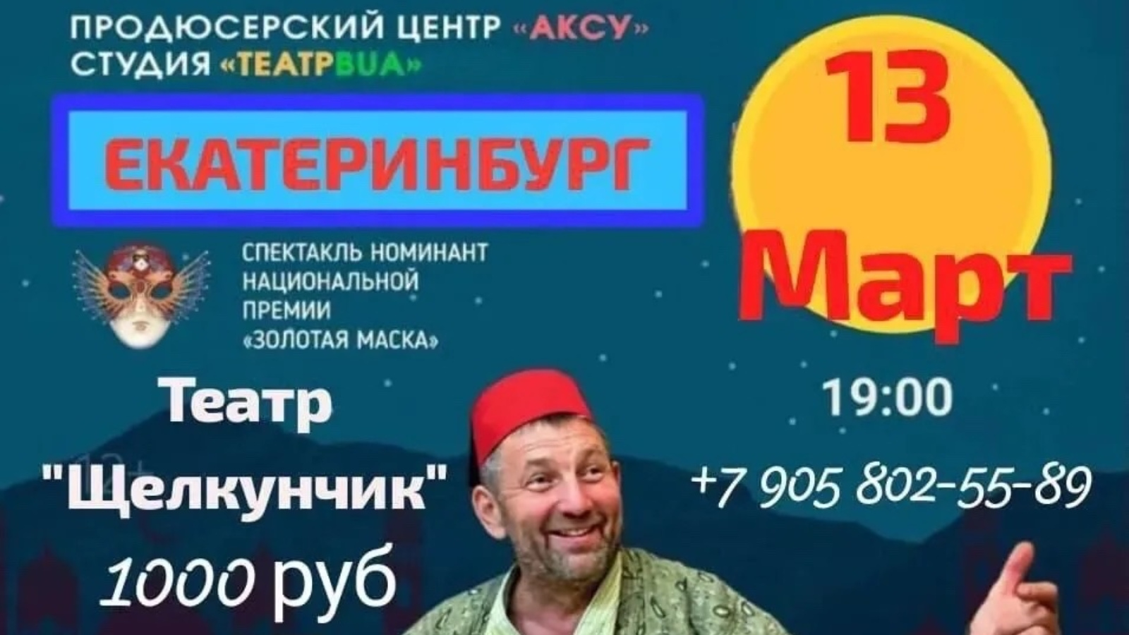 Дорогие друзья! 13 марта в 19:00 в «Щелкунчике» (ул.8 марта, 104) состоится моно-спектакль Раиля Садриева - «Дервиш».